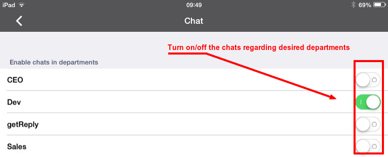 By default the chat availability in the iOS app of LiveAgent is disabled. However, you can turn it on easily as shown in the screenshots below.