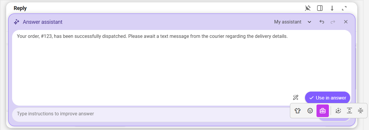 - write your draft message and the instructions by which it should be modified directly in the Answer assistant window,