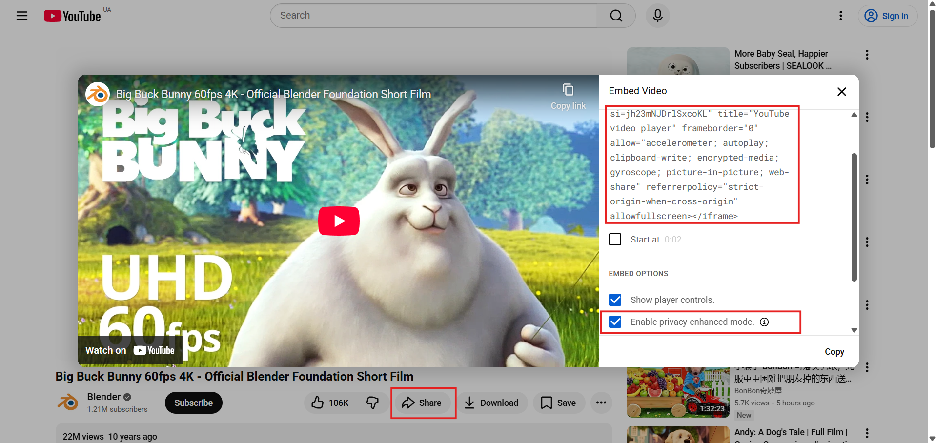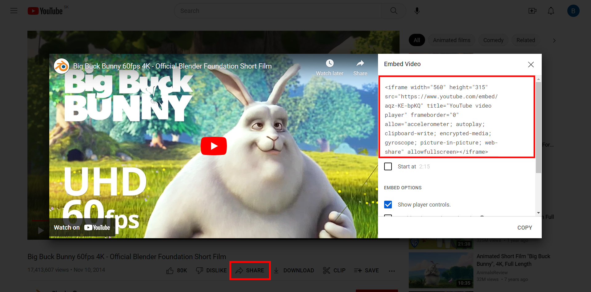 From the box that appears, copy the HTML code.