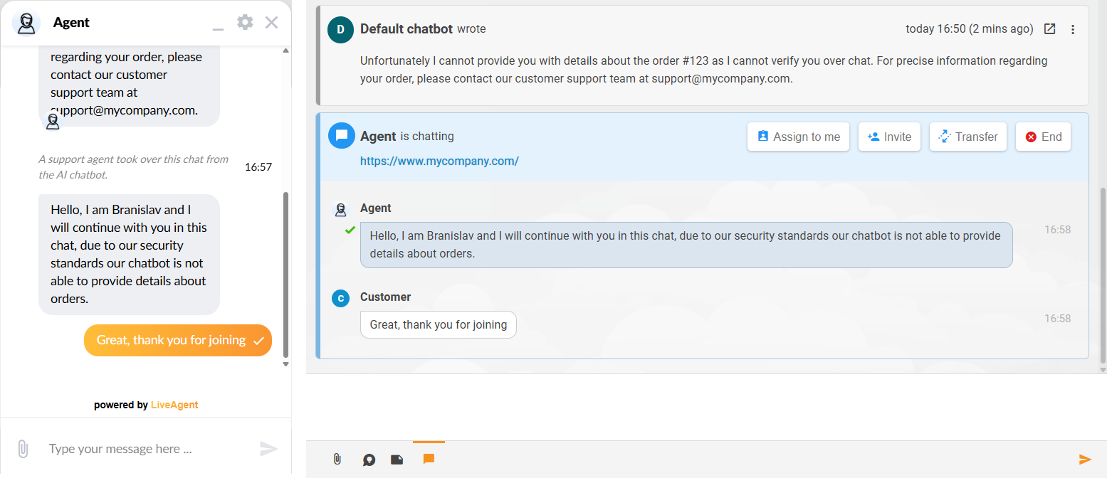 Agent Takeover of a Chatbot Chat